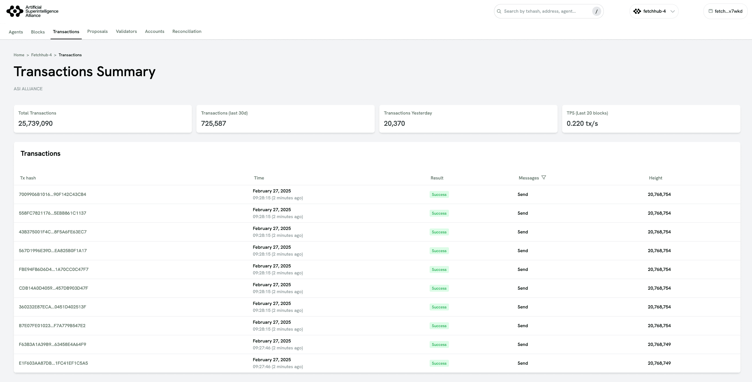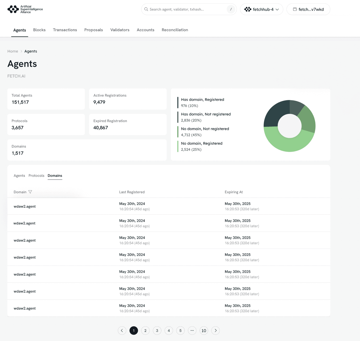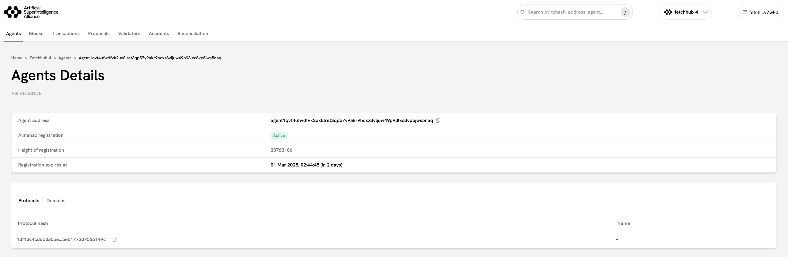Within the ASI Network, an essential tool is the Agent Network Hub which works similarly to any block explorer, thus offering the opportunity for users to navigate and analyze the Fetch.ai blockchain network data and related information.
