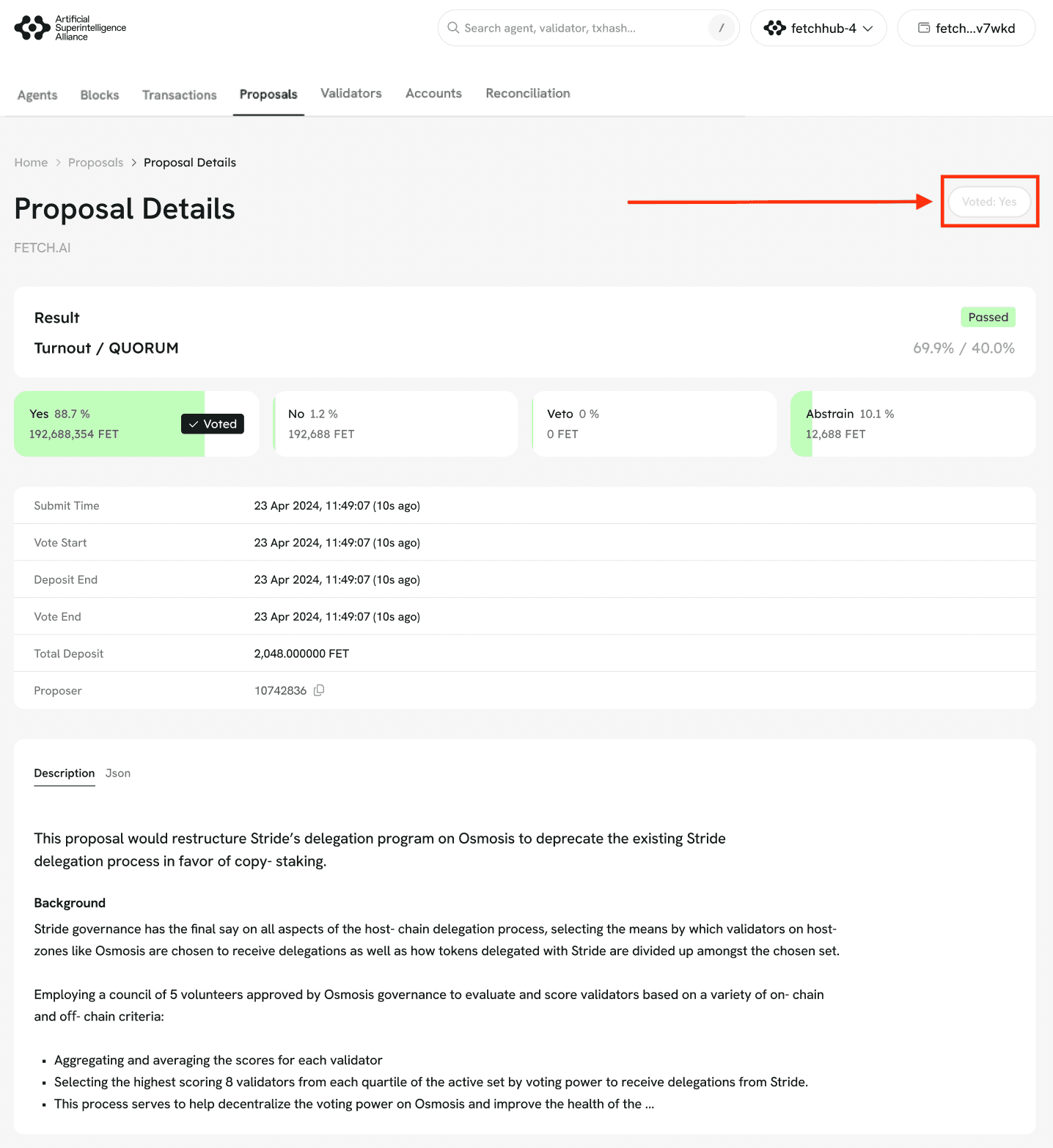 This page allows users to check out the total number of proposals, their status, and voting outcomes. Users can track past proposals along with their approval or rejection status. The page helps ensure transparency in network governance and allows users to stay informed about decisions affecting the ASI ecosystem.