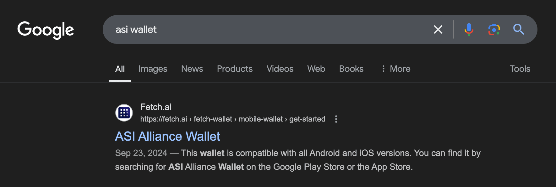 - To use ASI Alliance Wallet, click on the ASI Alliance Wallet button in your browser. This will redirect you to the ASI Alliance Wallet landing page.