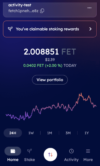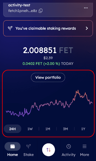In the home screen of the Wallet, users can track their portfolio performance over various timeframes (from 24 hours to 1 year).