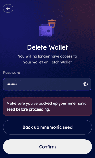 This functionality provides the option to delete a wallet.