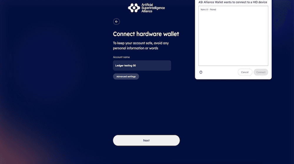 Choose Connect Hardware Wallet and enter the required details.