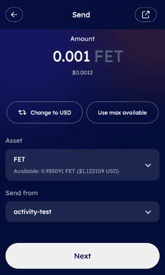 After selecting the Send option, the user needs to enter the amount they wish to send and choose the account from which the money will be transferred. Be sure to select the correct account on your wallet.