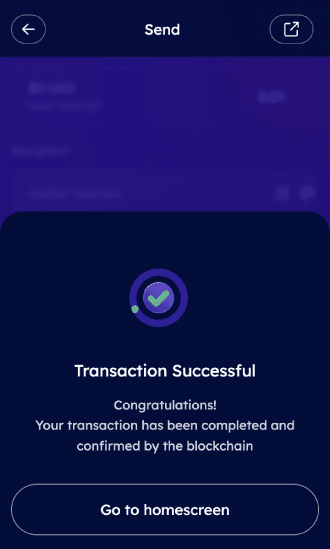 Next, the user is prompted to add the recipient’s address. This can be done in three ways: either by manually entering it, scanning the address or by using the Add to contact option.