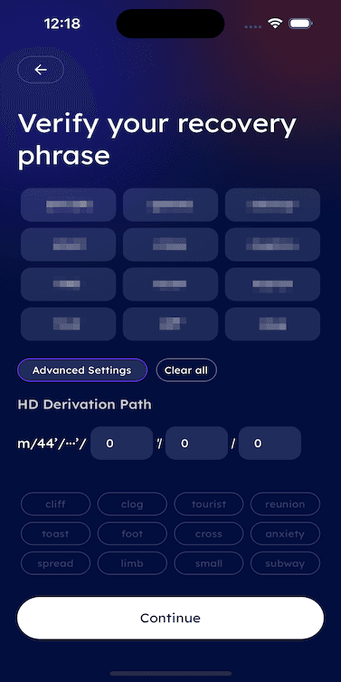 Create New seed phrase