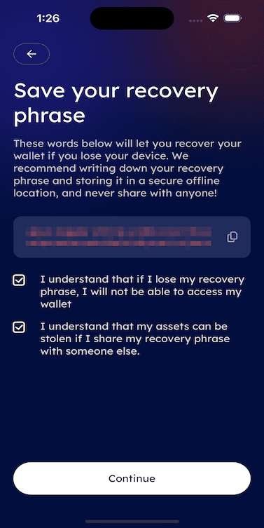 - When a user opens the mobile app and already has an account created on the web extension, they can import their existing account into the mobile app.